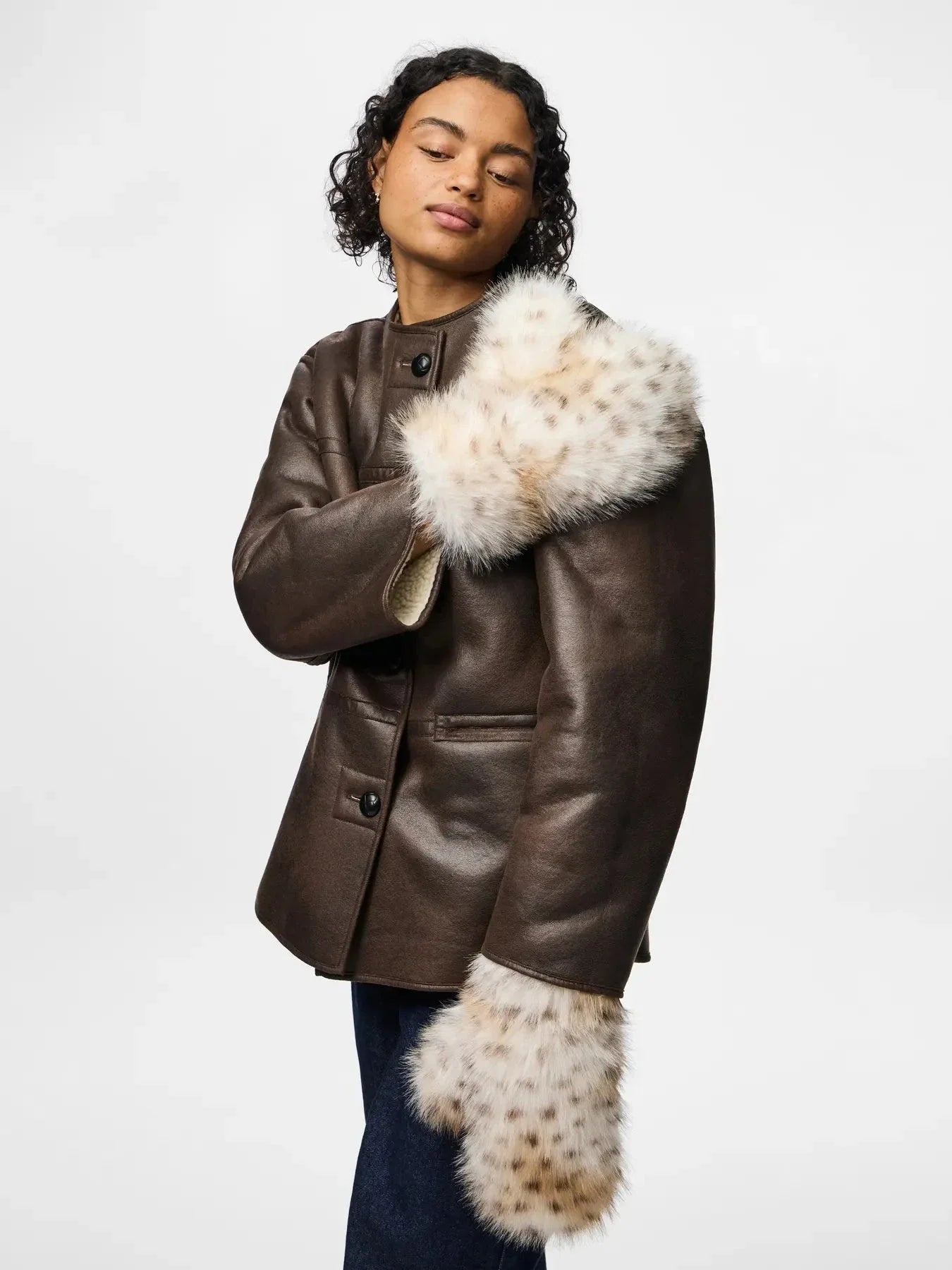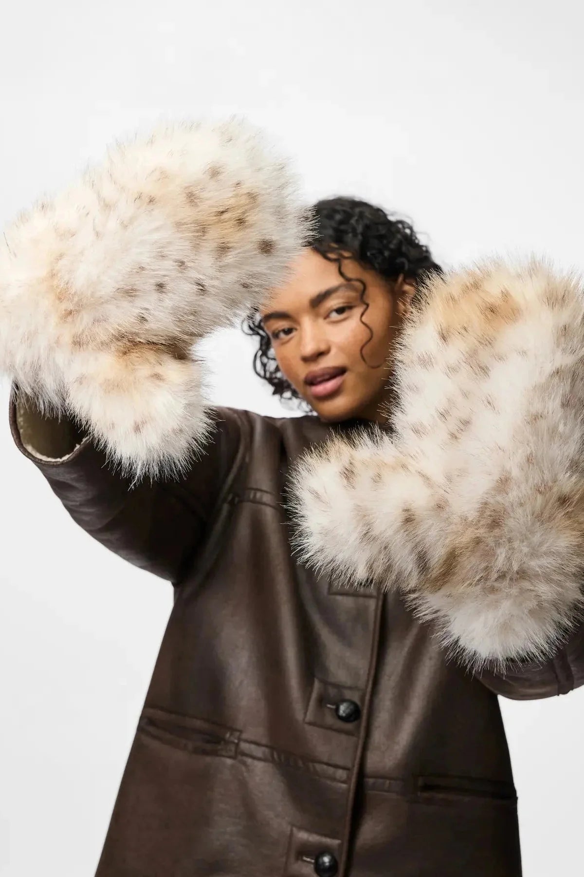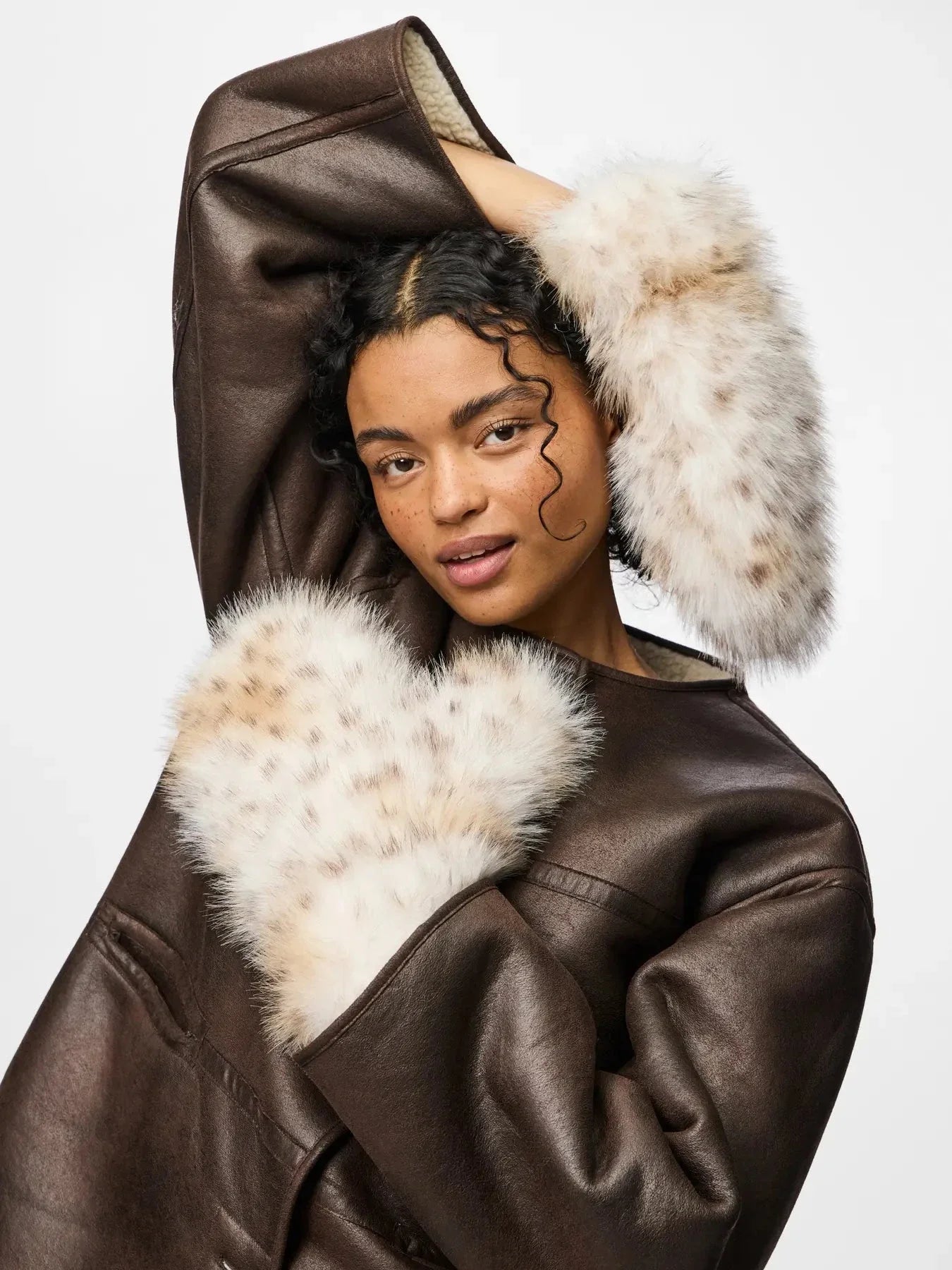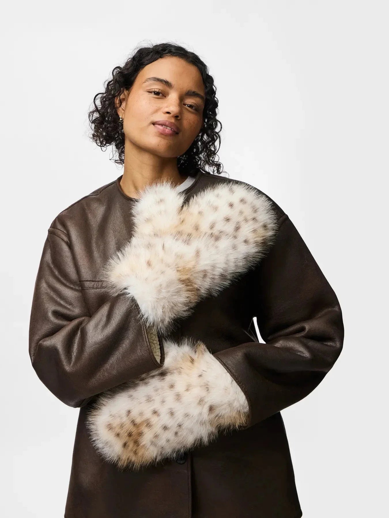Pieces Pcplush Fluffy Mittens Kleur: 5023213 Cloud Dancer Leopard
