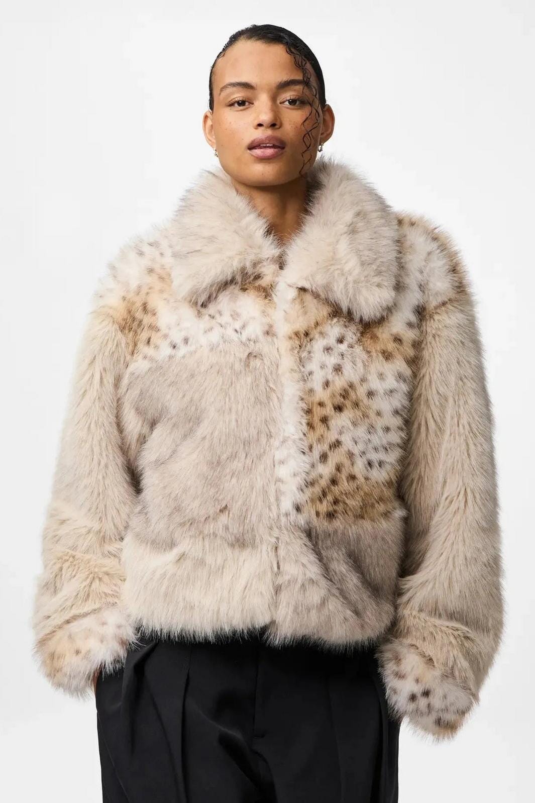 Pieces Pcplush Short Fluffy Jacket Kleur: 5023208 Porpoise Patchwork