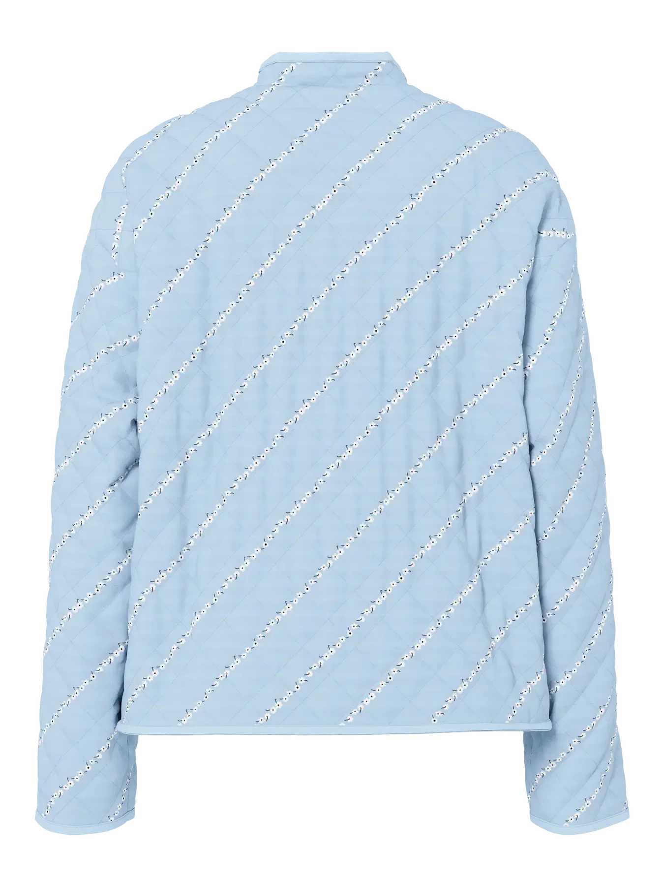 Gewatteerd jack van Pieces in een lichtblauwe tint met een patroon van bloemen, strepen en ruiten. Het jack is gemaakt van 100% viscose.