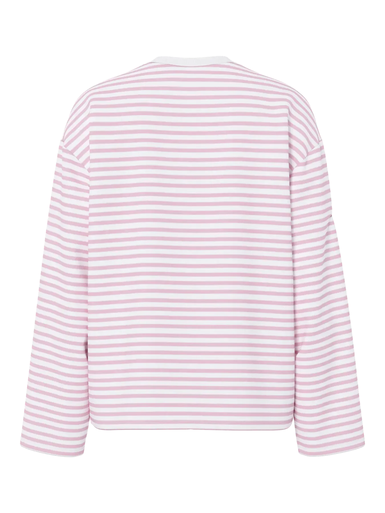 Top met lange mouwen van Pieces met strepen in wit en lichtroze. Gemaakt van 75% katoen en 25% polyester.