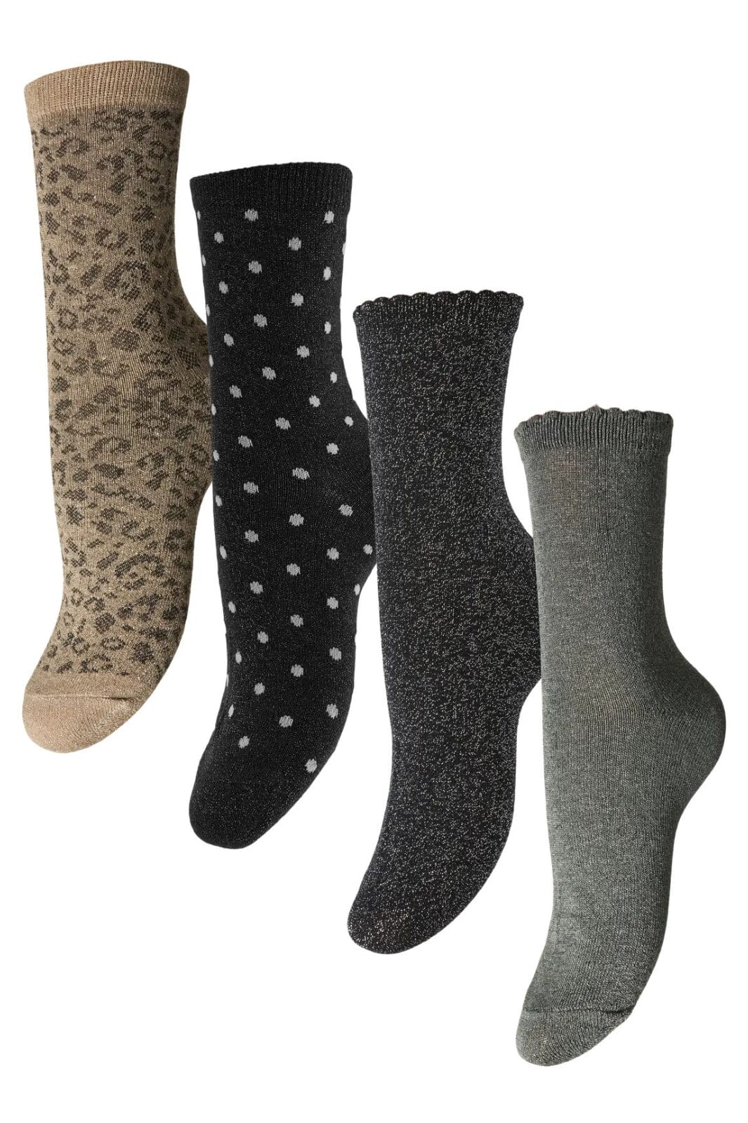 Pieces Pcsebby Glitter Long 4-Pack Mix Kleur: 4866196 Deep Lichen Green 4-Pack Deep-Blcsil-Blcdot-Taupleo