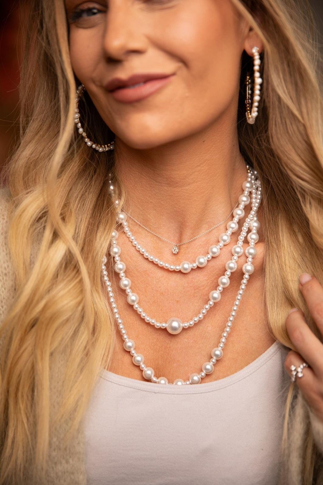 Een set van 3 parelkettingen van Rooted met witte parels in verschillende maten en een goudkleurige afwerking.