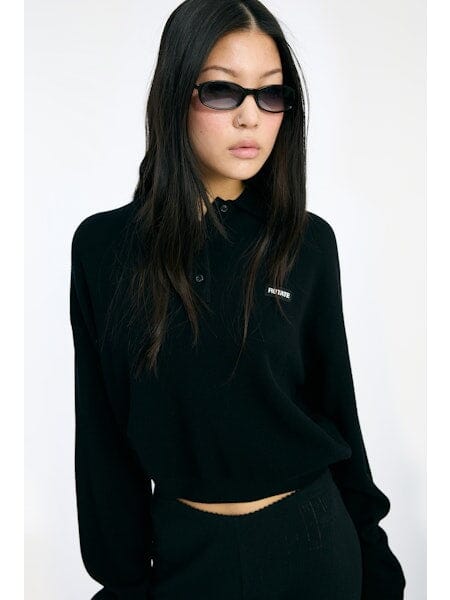 Rotate Slinky Knit Polo 115137100 Kleur: BLACK