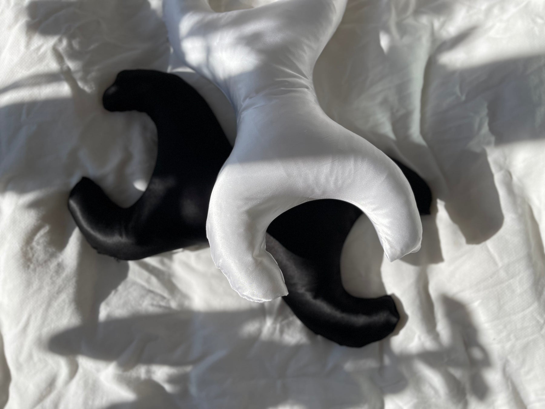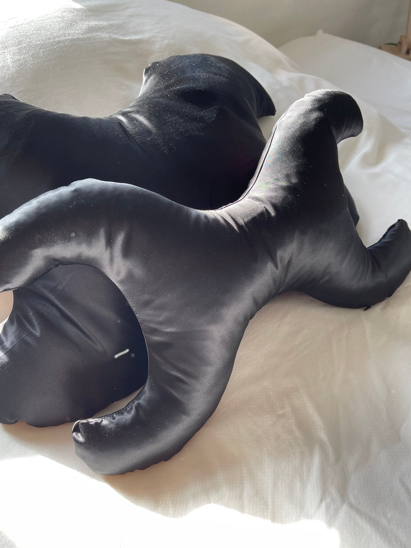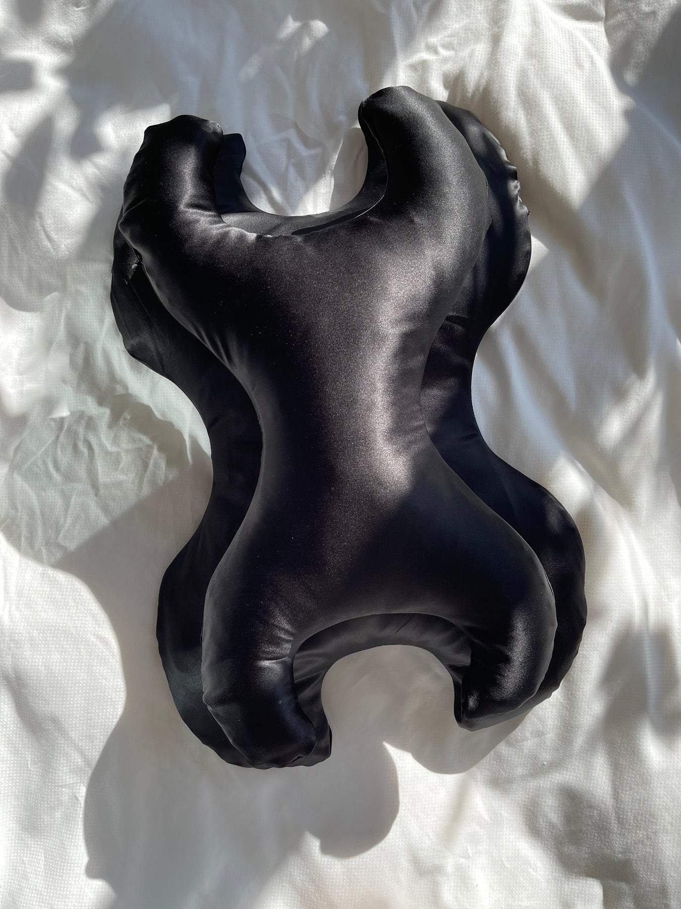 Zwart zijden hoes van Save My Face voor het La Petite-kussen. De hoes is gemaakt van charmeuse-zijde met antiseptische eigenschappen die 's nachts beschermen tegen huidirritaties.