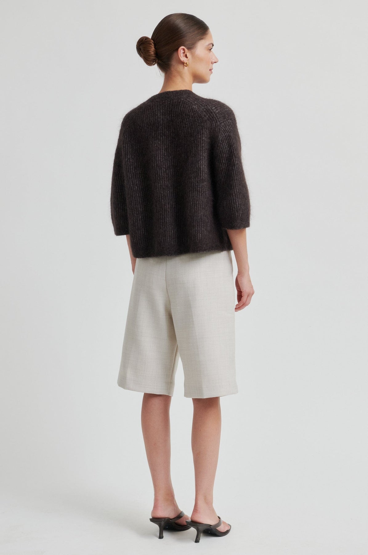 Donkerbruine ribgebreide cardigan van Second Female. Gemaakt van een mix van mohair en wol.