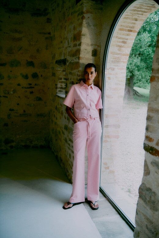 Roze denimshirt van Second Female, gemaakt van zachte katoendenim. Het shirt heeft een ontspannen pasvorm en decoratieve stiksels in dezelfde kleur.