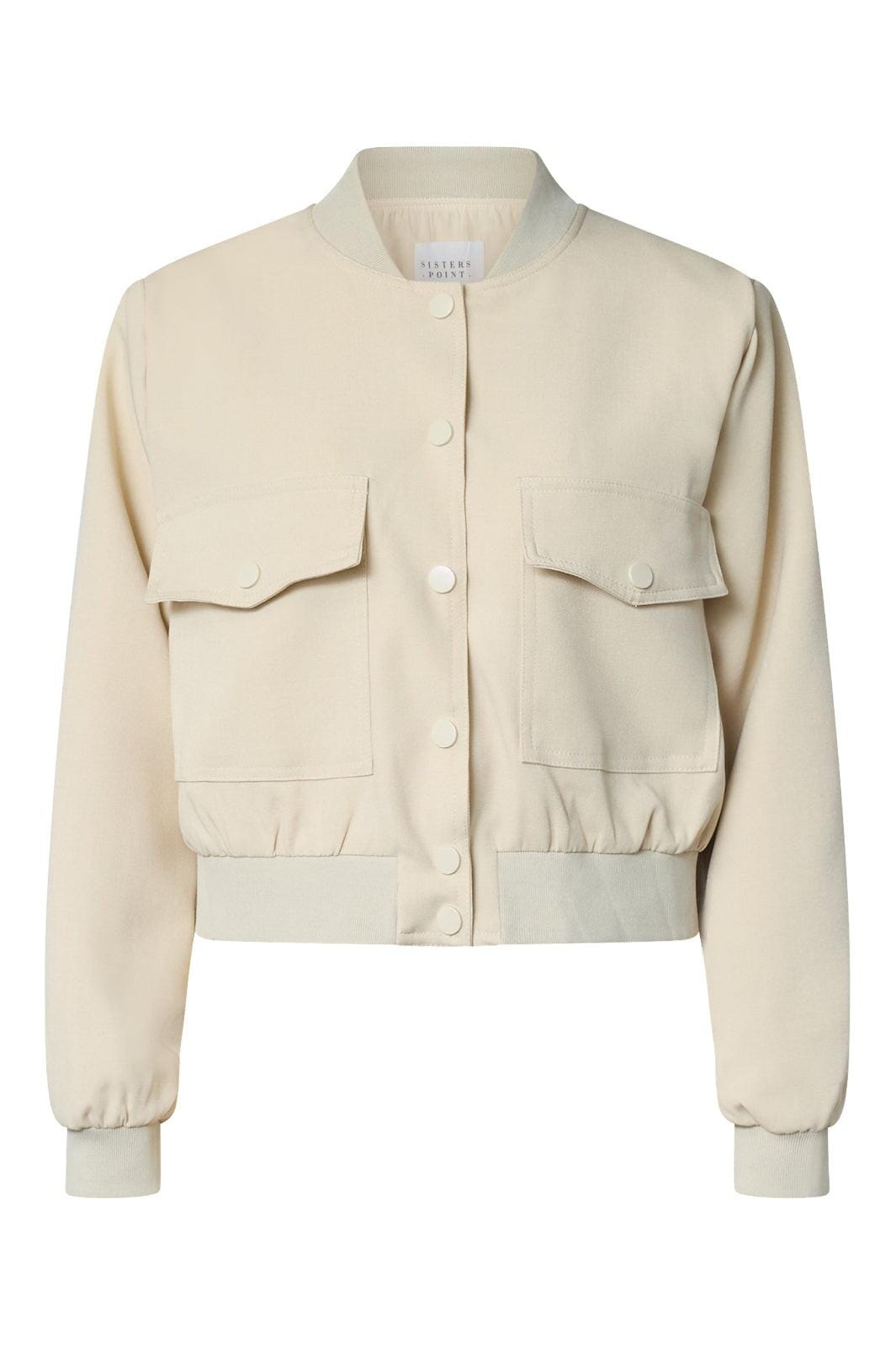 Kort jasje van Sisters Point in een lichtbeige kleur. Het jasje heeft een ronde hals met elastische rand en lange mouwen met brede geribde boorden.