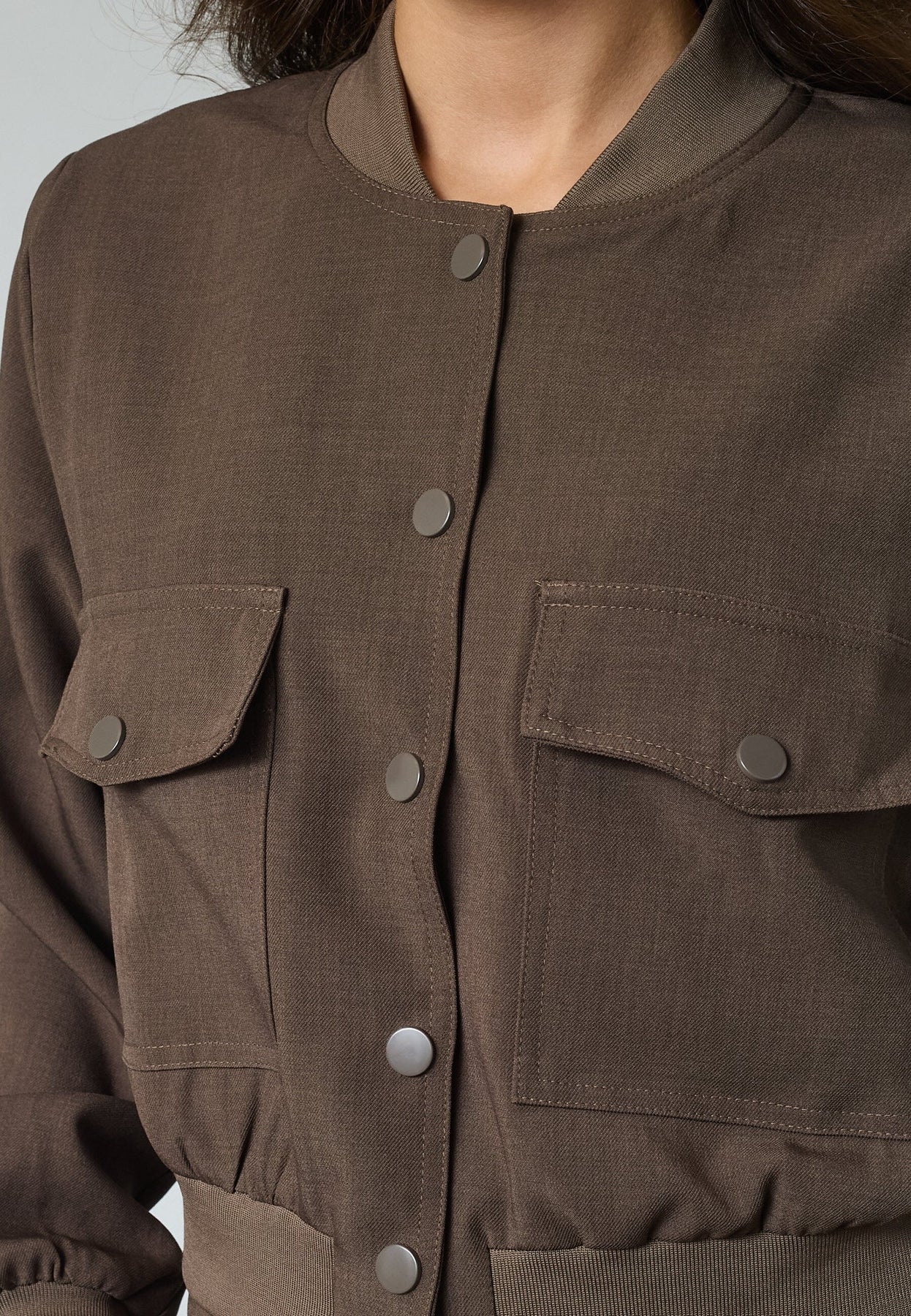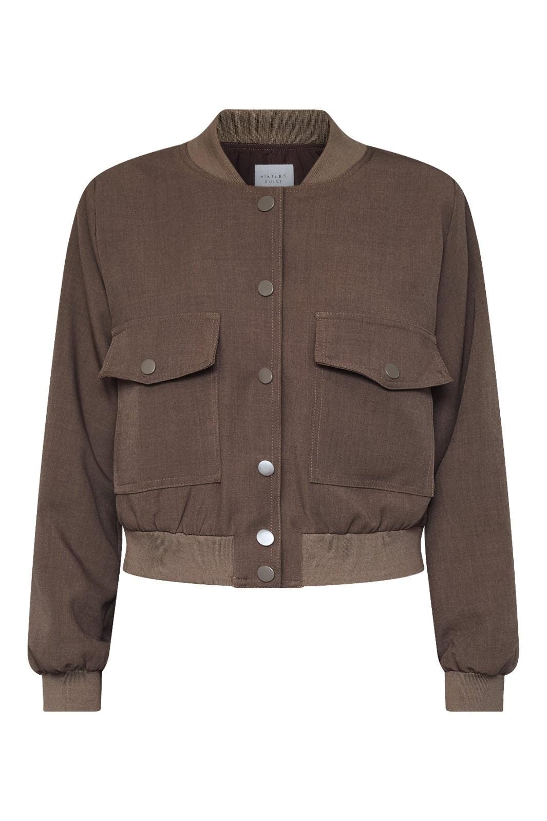Kort jasje van Sisters Point in een bruine tint. Het jasje heeft decoratieve stiksels, drukknoopsluiting in het midden en twee borstzakken met kleppen.