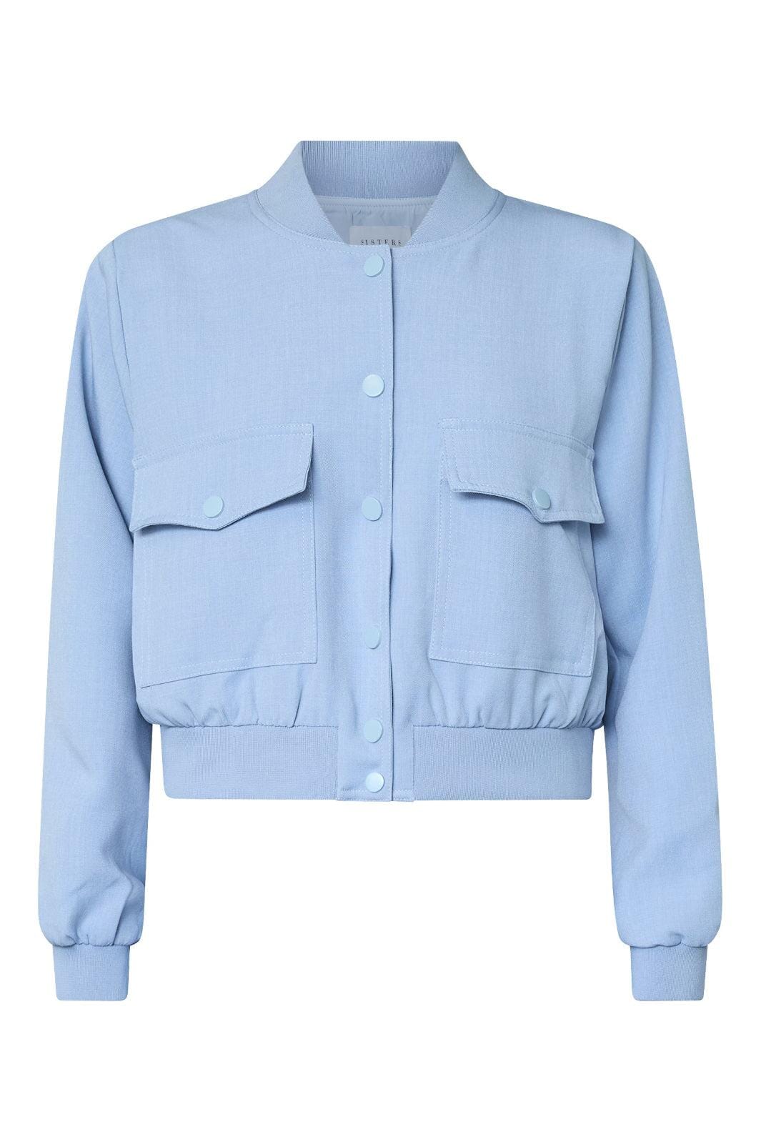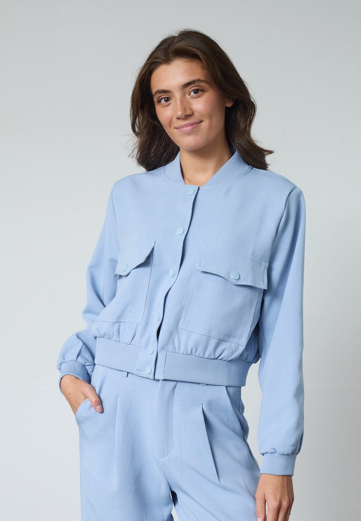 Lichtblauw jack van Sisters Point, gemaakt van polyester met elastaan. Het jack heeft een kort model en is geschikt voor casual gelegenheden.