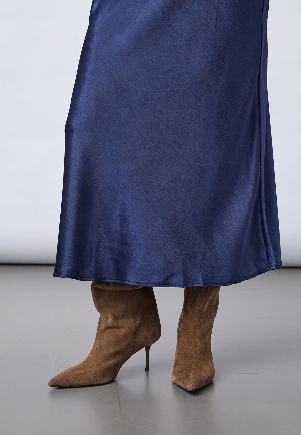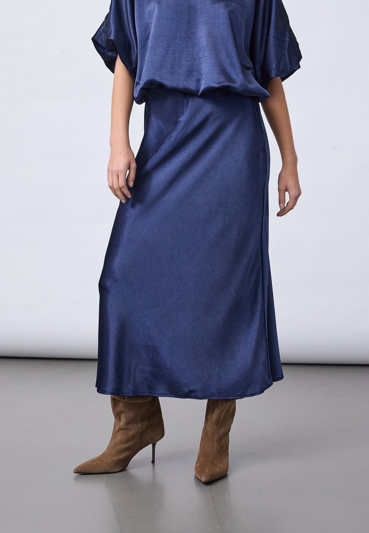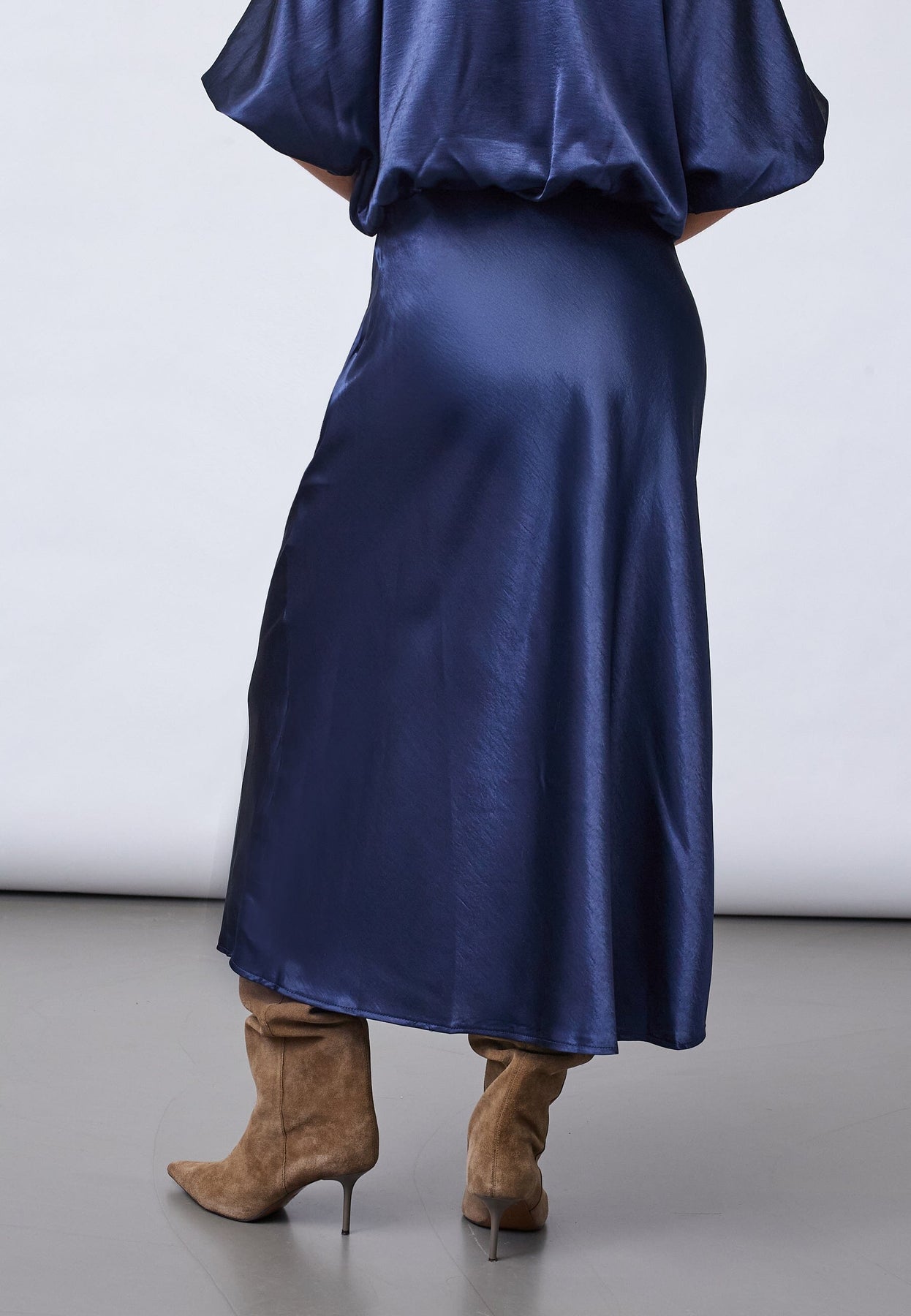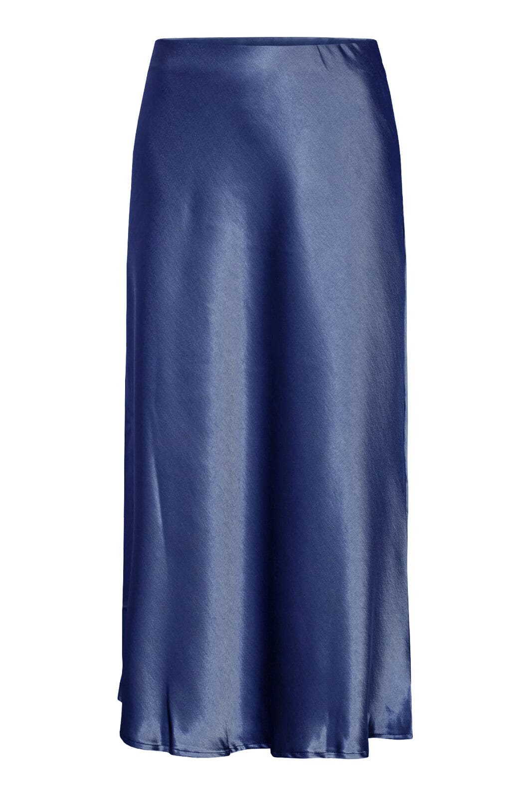 Rok van Sisters Point in donkerblauw, 100% polyester. De rok heeft een lengte tot halverwege de kuit en een A-lijn ontwerp.