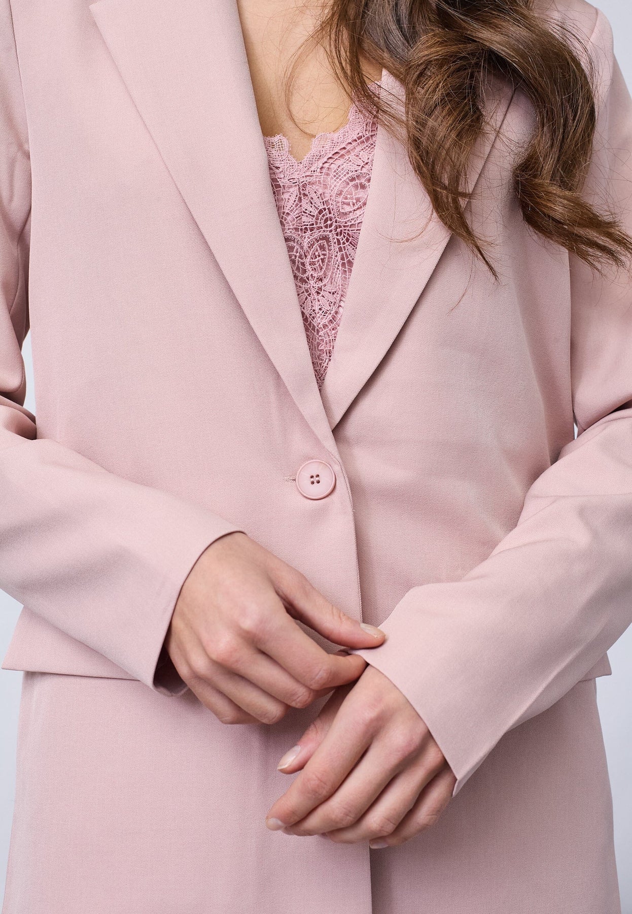 Blazer van Sisters Point in een roze-paarse tint. De blazer heeft een reverskraag en een knoopsluiting aan de voorkant met drie sierknopen op de mouwen.