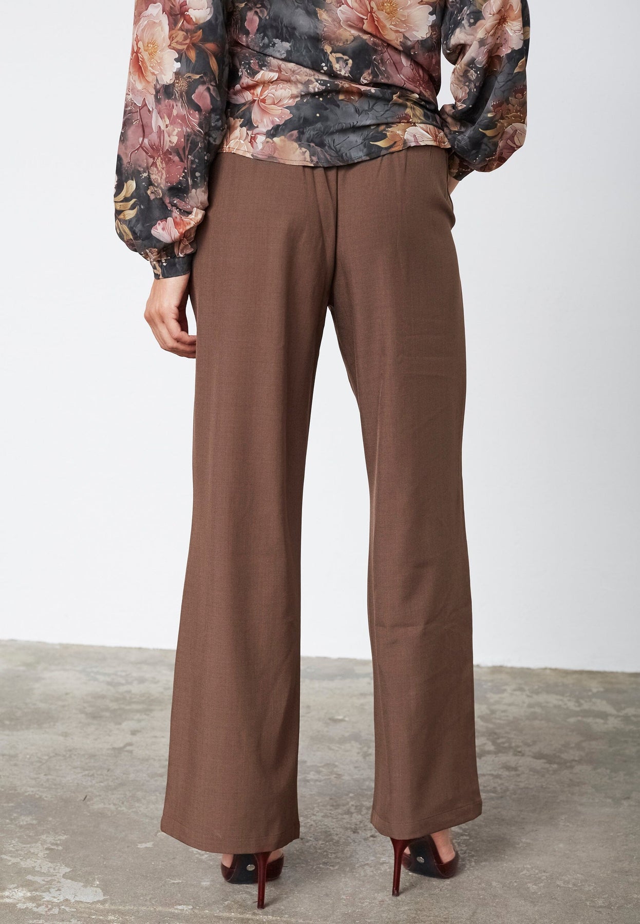 Broek van Sisters Point in donker chocoladebruin. Gemaakt van 95% polyester en 5% elastaan, wat zowel stretch als vormvastheid biedt.