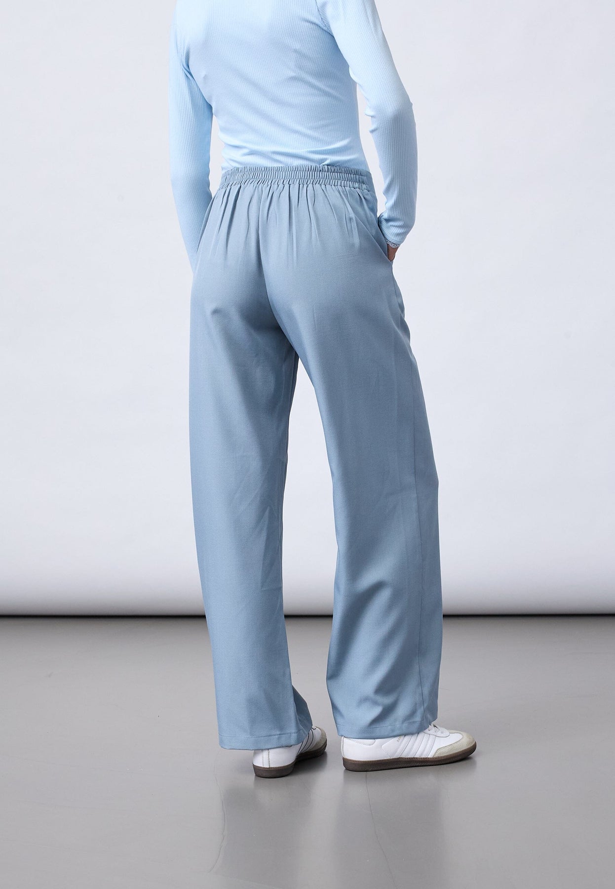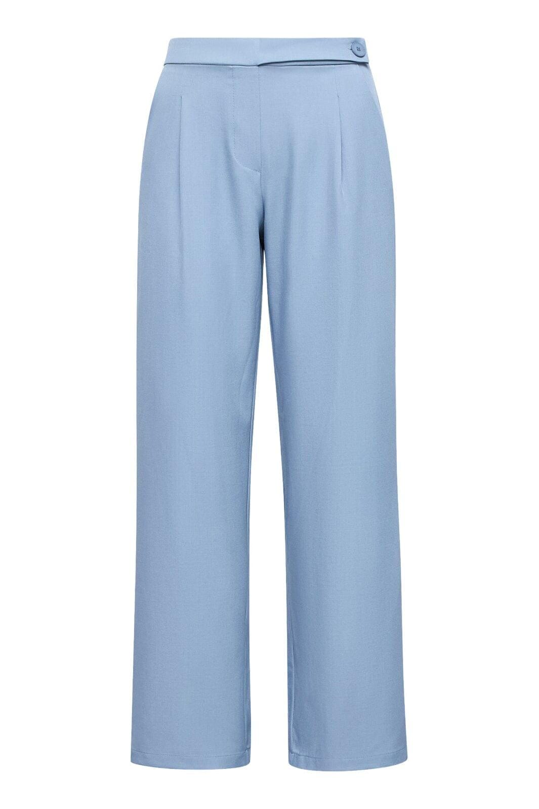 Lichtblauwe broek van Sisters Point met een hoge taille en een losse pasvorm. De broek heeft wijde pijpen en een enkellengte.