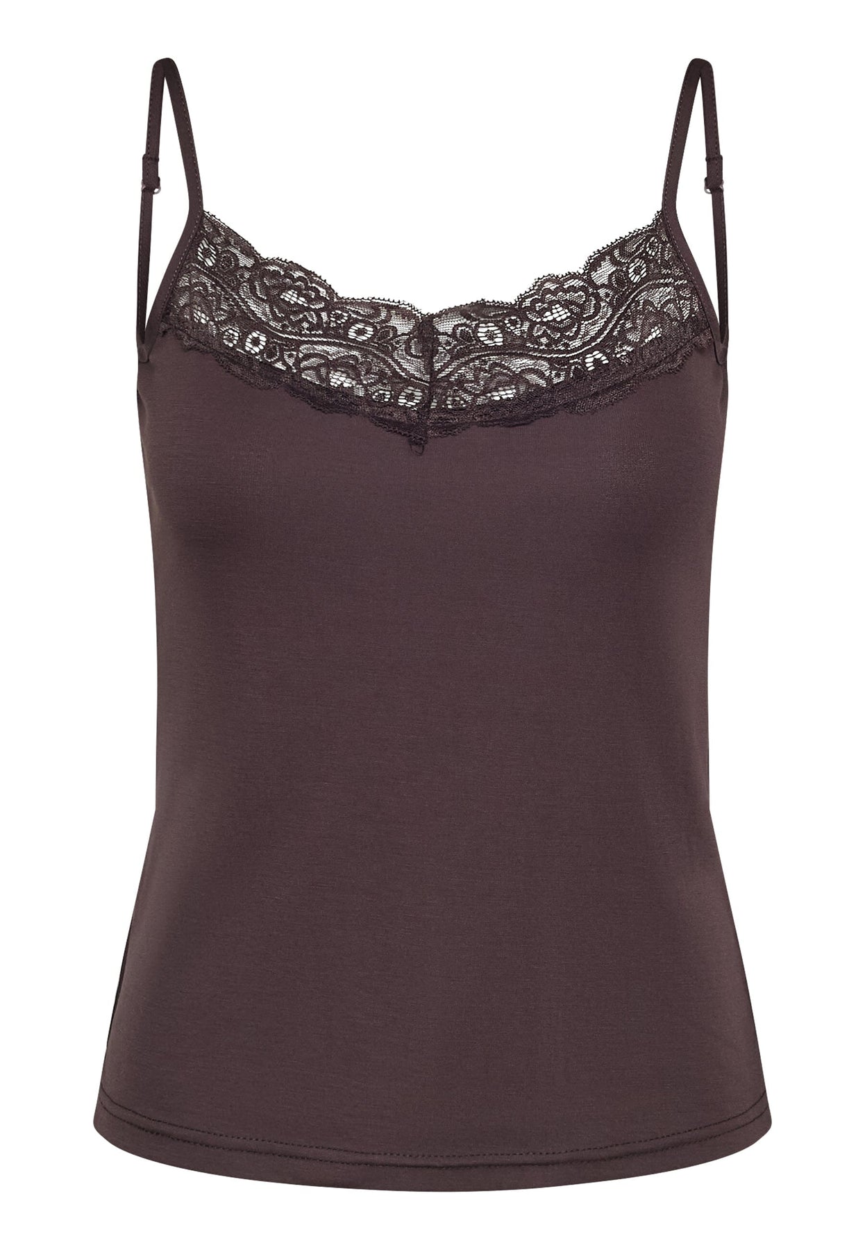 Top van Sisters Point in een diepe chocoladebruine tint. Gemaakt van 60% viscose, 35% polyester en 5% elastaan.
