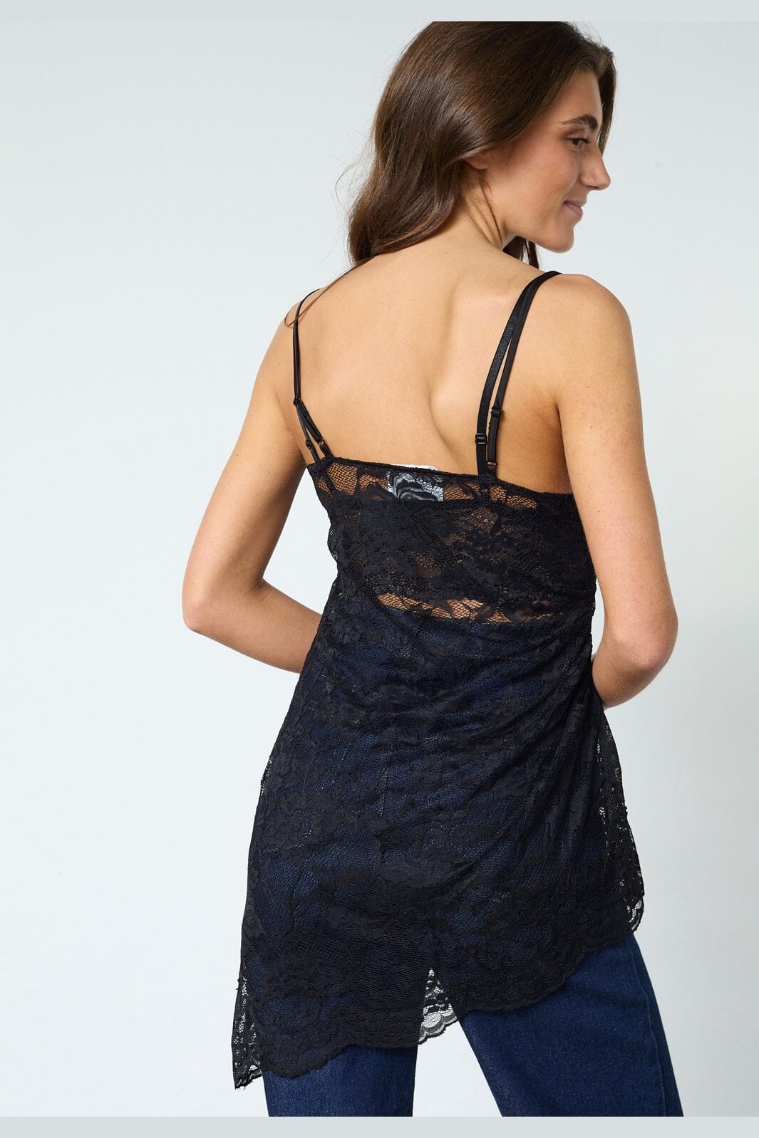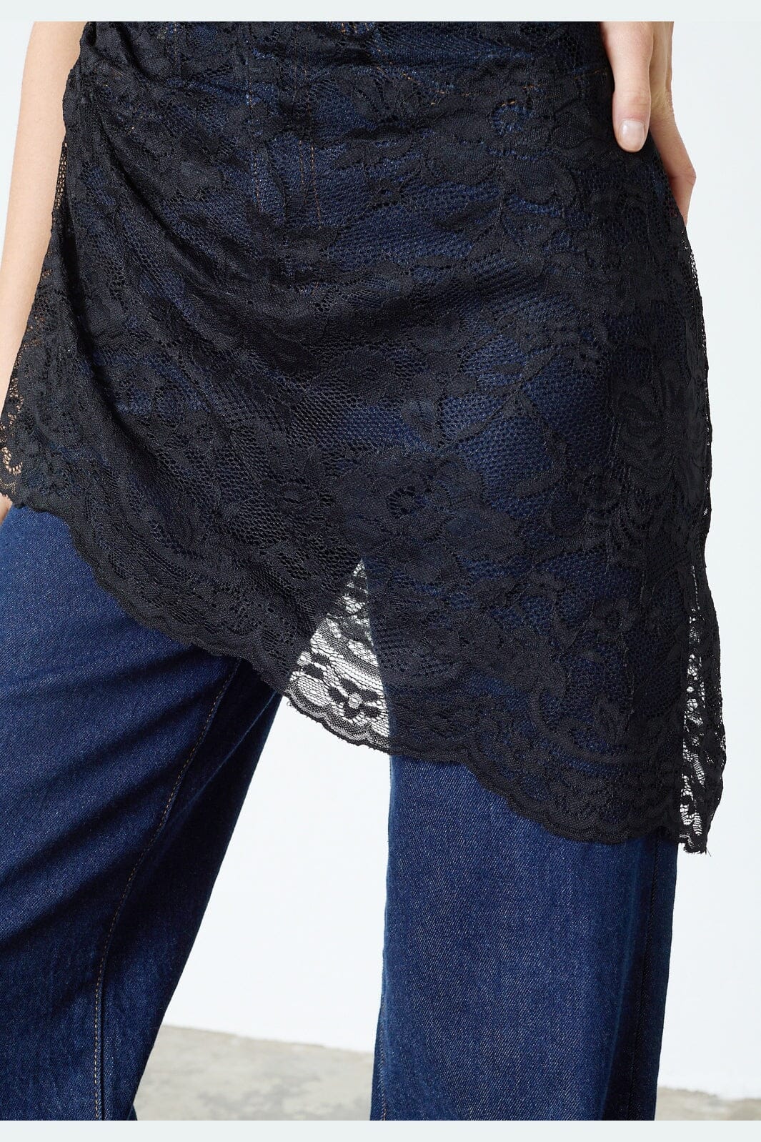 Zwarte kanten jurk van Sisters Point met bloemenpatroon. De jurk is doorzichtig en geschikt voor zowel ontspannen dagen als feestelijke gelegenheden.