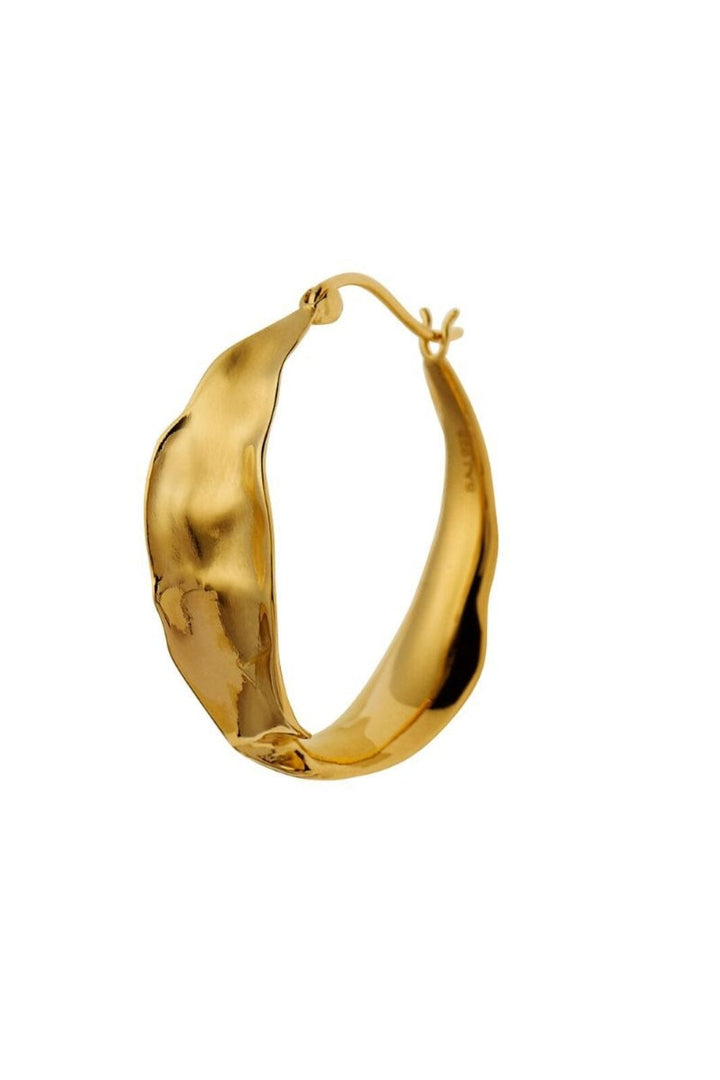 Gouden hoopoorbel van Stine A met een golvende vorm. De oorbel is gemaakt van 18 karaat verguld 925 sterling zilver. De prijs is per stuk.