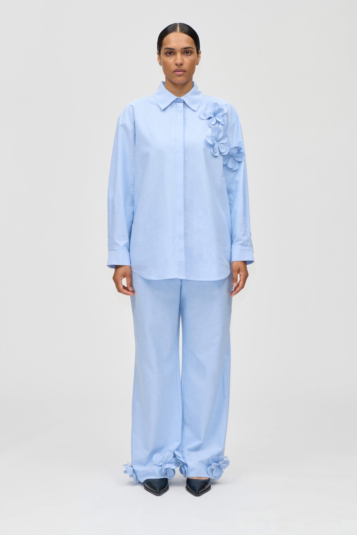Stine Goya 2464 Floral Shirting, Floral Elasticated Long Pantssg-ps26-p109-2464 Kleur: Brunnera Blue