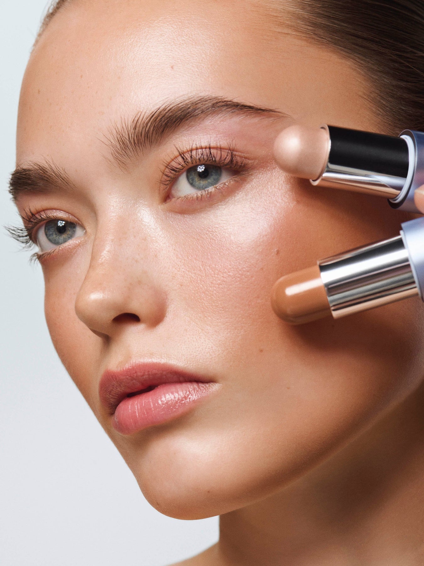 Breng de stick direct aan op de zones die je wilt accentueren. Gebruik hem op de jukbeenderen om contrast te creëren, onder de wenkbrauwen om de blik te liften, in de ooghoek om het oog te openen en op de neusbrug om dimensie te geven. Blend het product uit met je vingers of een kwast. De stick kan ook worden gebruikt als champagnekleurige oogschaduw op de oogleden of als een subtiele glans op de lippen. De formule voelt licht en gewichtloos aan op de huid.