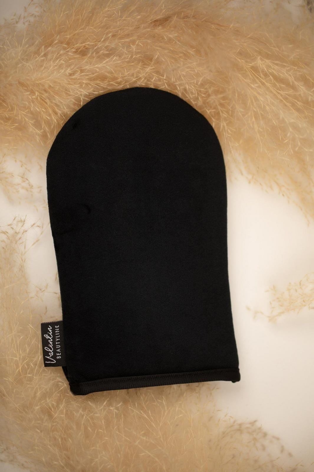 Zwarte applicatiehandschoen van Valentin Beautyline voor zelfbruiner en bronzer. De handschoen beschermt de handen tegen verkleuring en helpt het product gelijkmatig te verdelen.