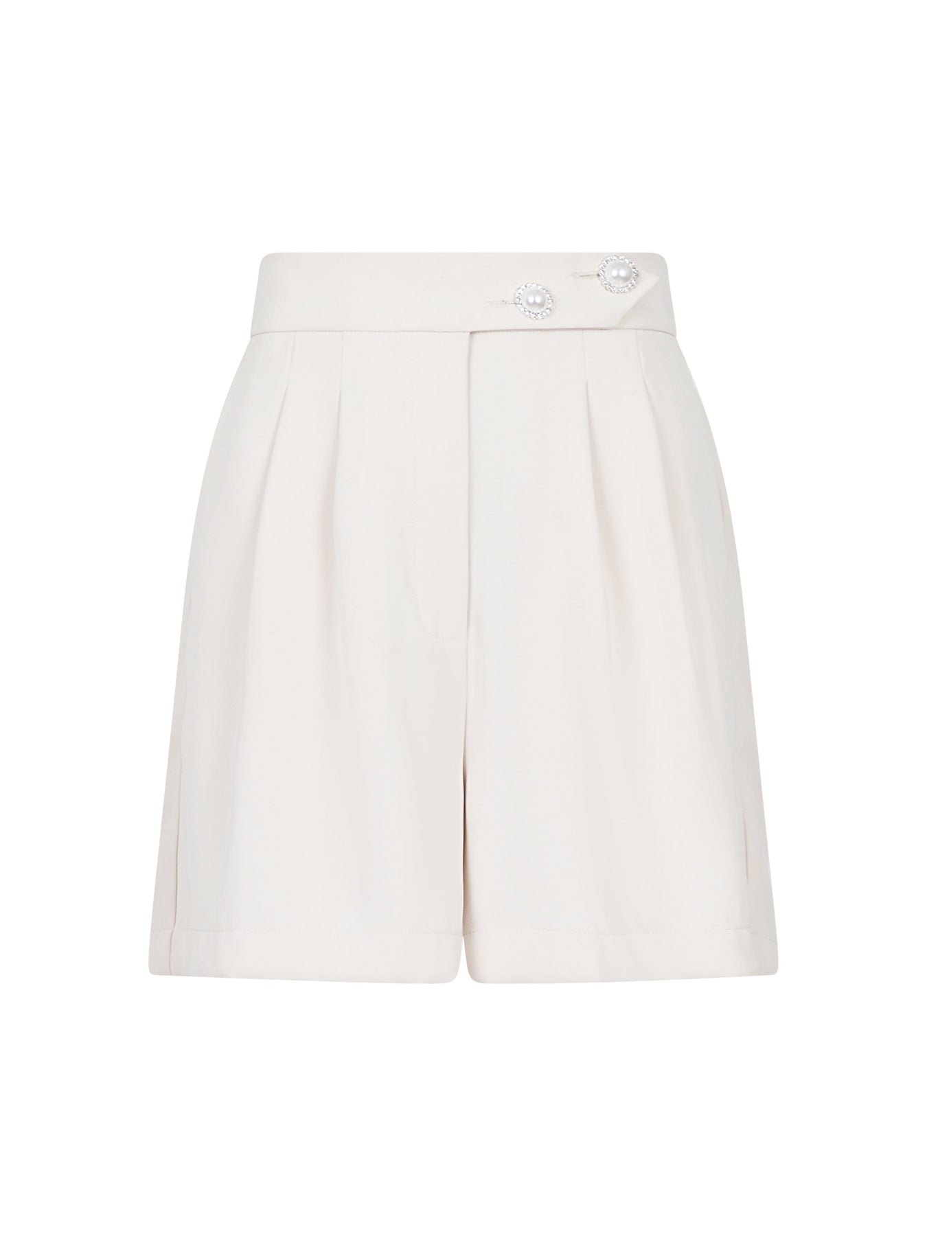 Hoge shorts van Valentin Studio in ivory. De shorts hebben een losse pasvorm met decoratieve knopen en pareldetails die een decoratieve uitstraling geven.