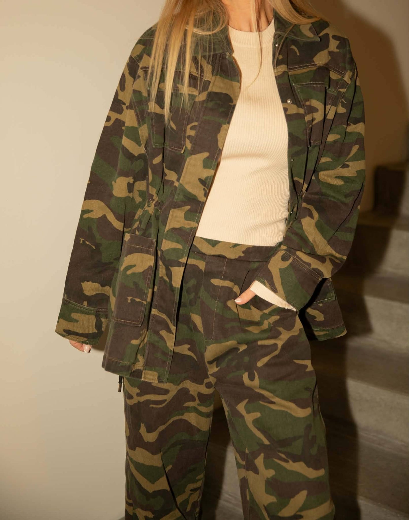 Loszittend jack van Valentin Studio, gemaakt van 100% katoen in legergroene camouflage. Het jack heeft een ontspannen pasvorm en is ontworpen voor casual gebruik.