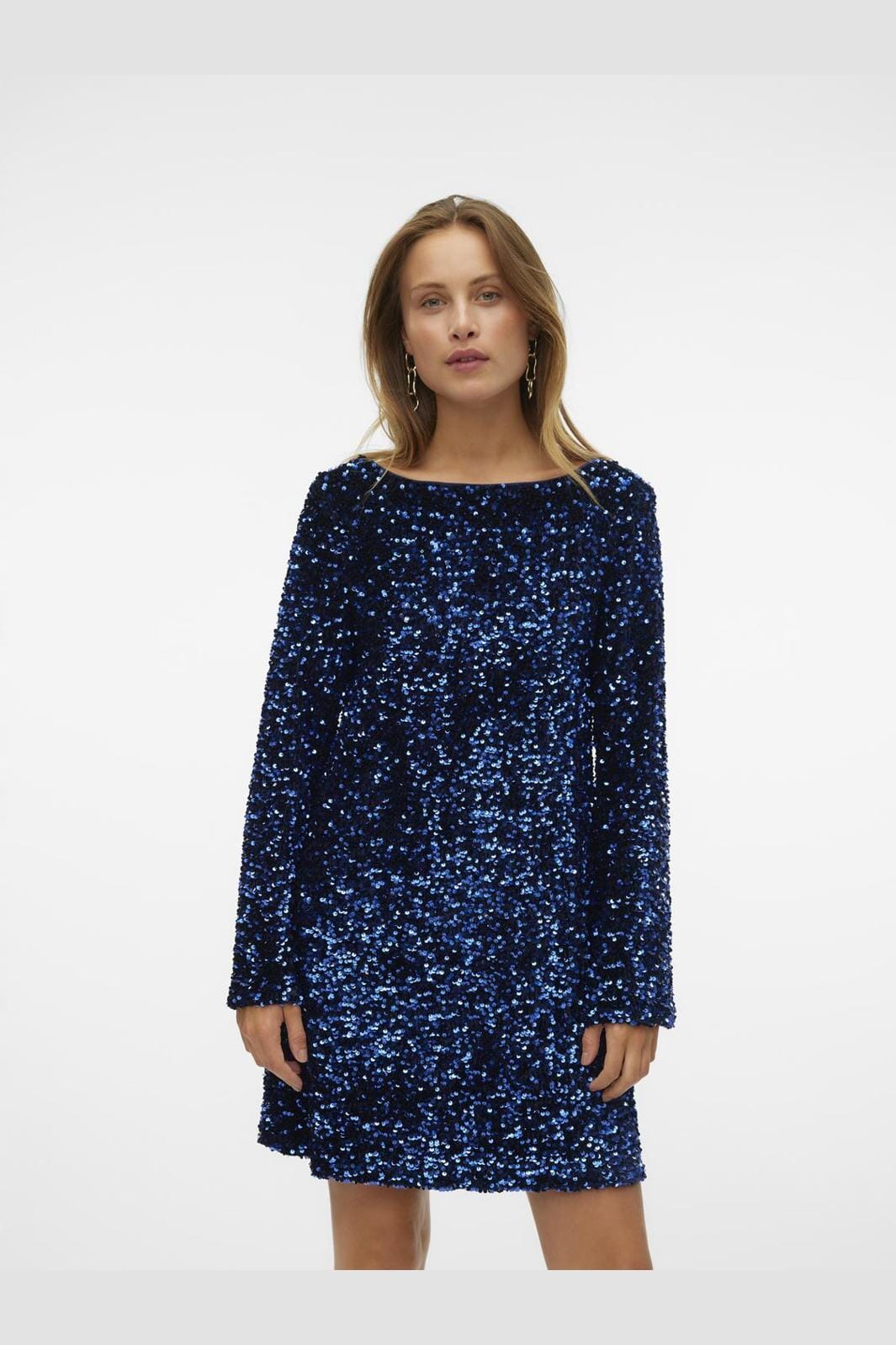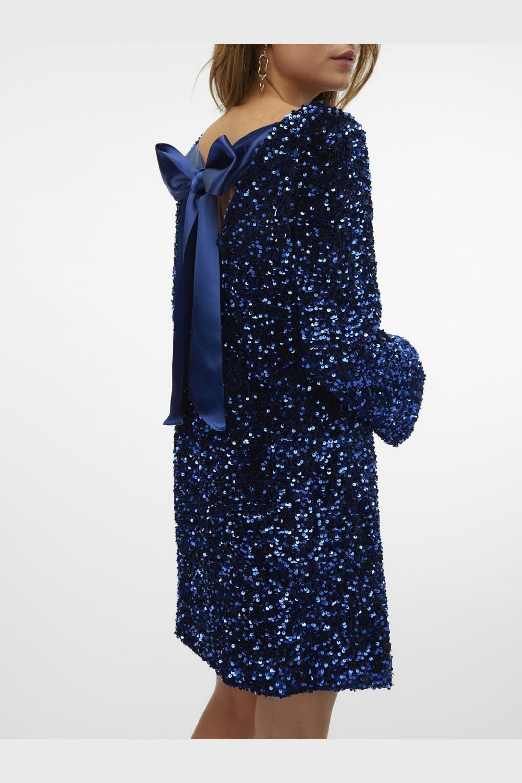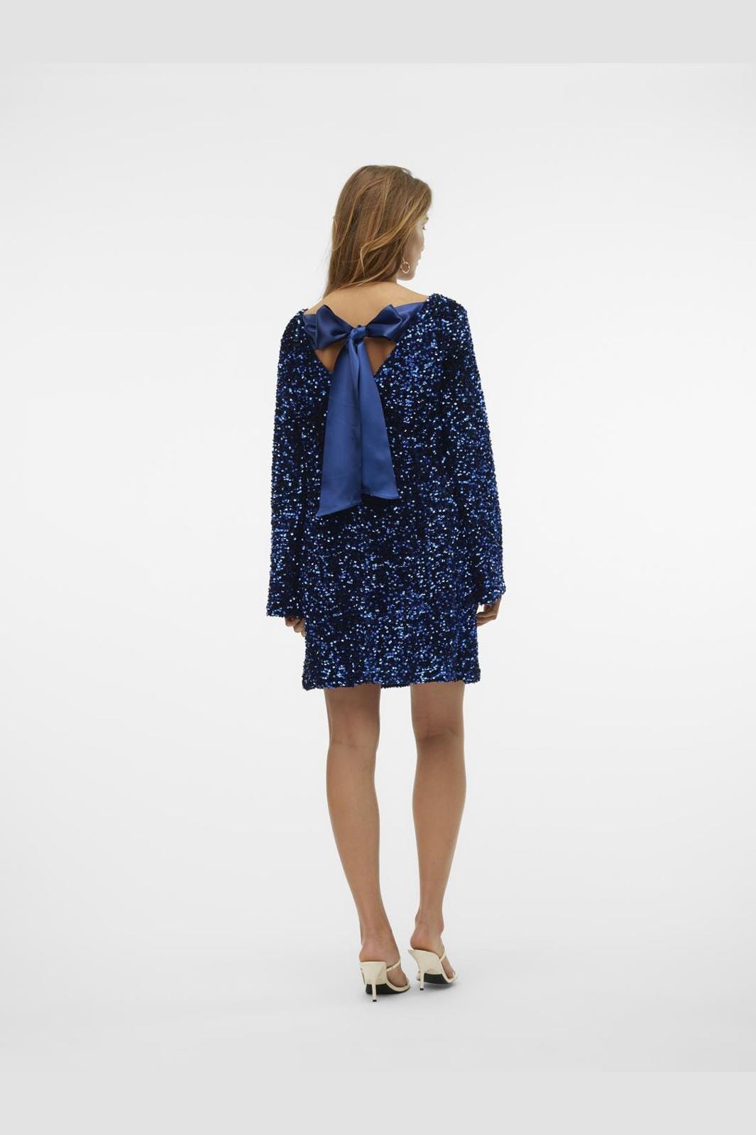 Vero Moda Vmlaila Ls Sequin Bow Dress Kleur: 4681341 Midnight Blue