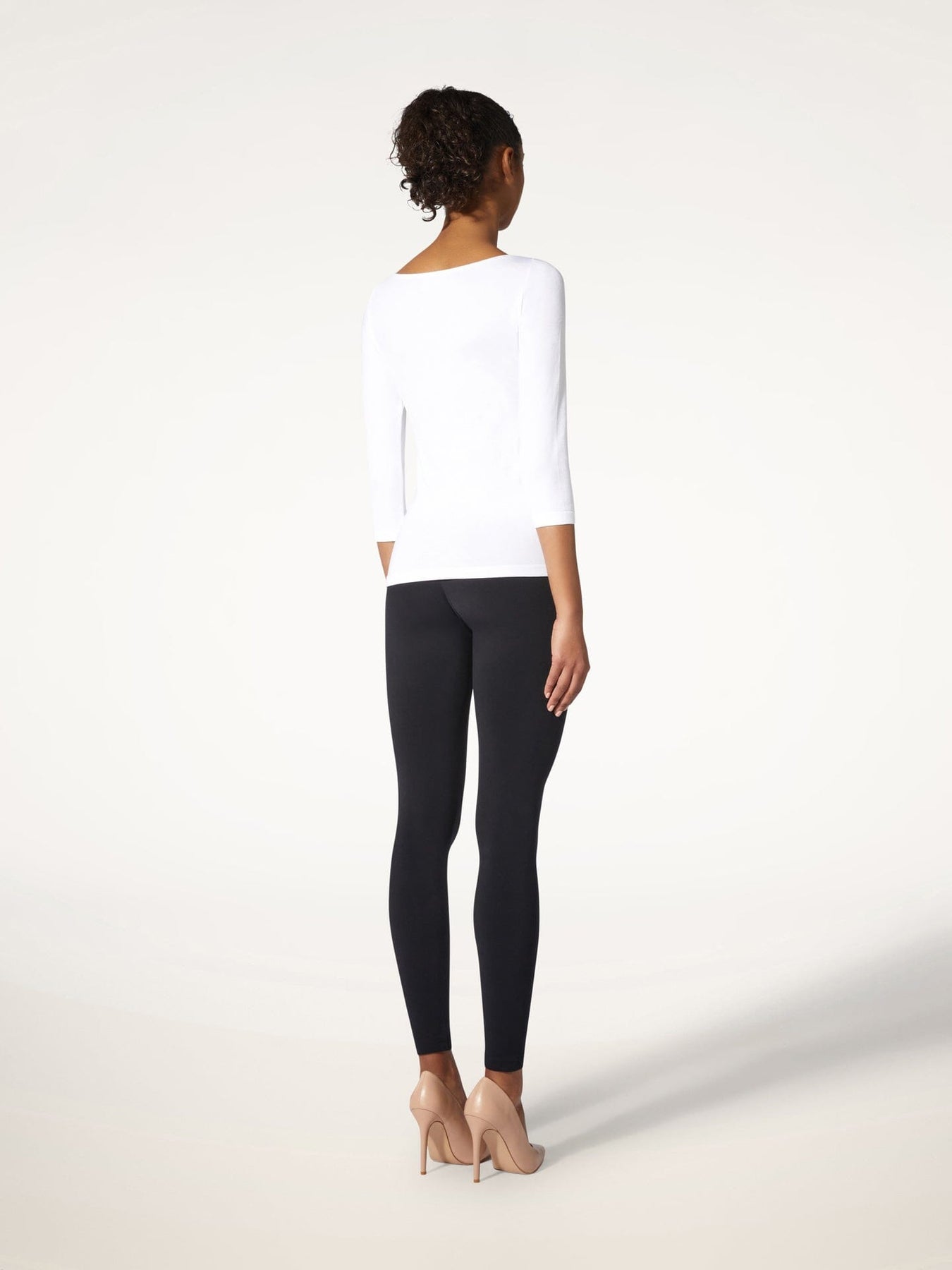 Witte top van Wolford met driekwartmouwen en een boothals. De aangesloten pasvorm geeft de top een gladde uitstraling.